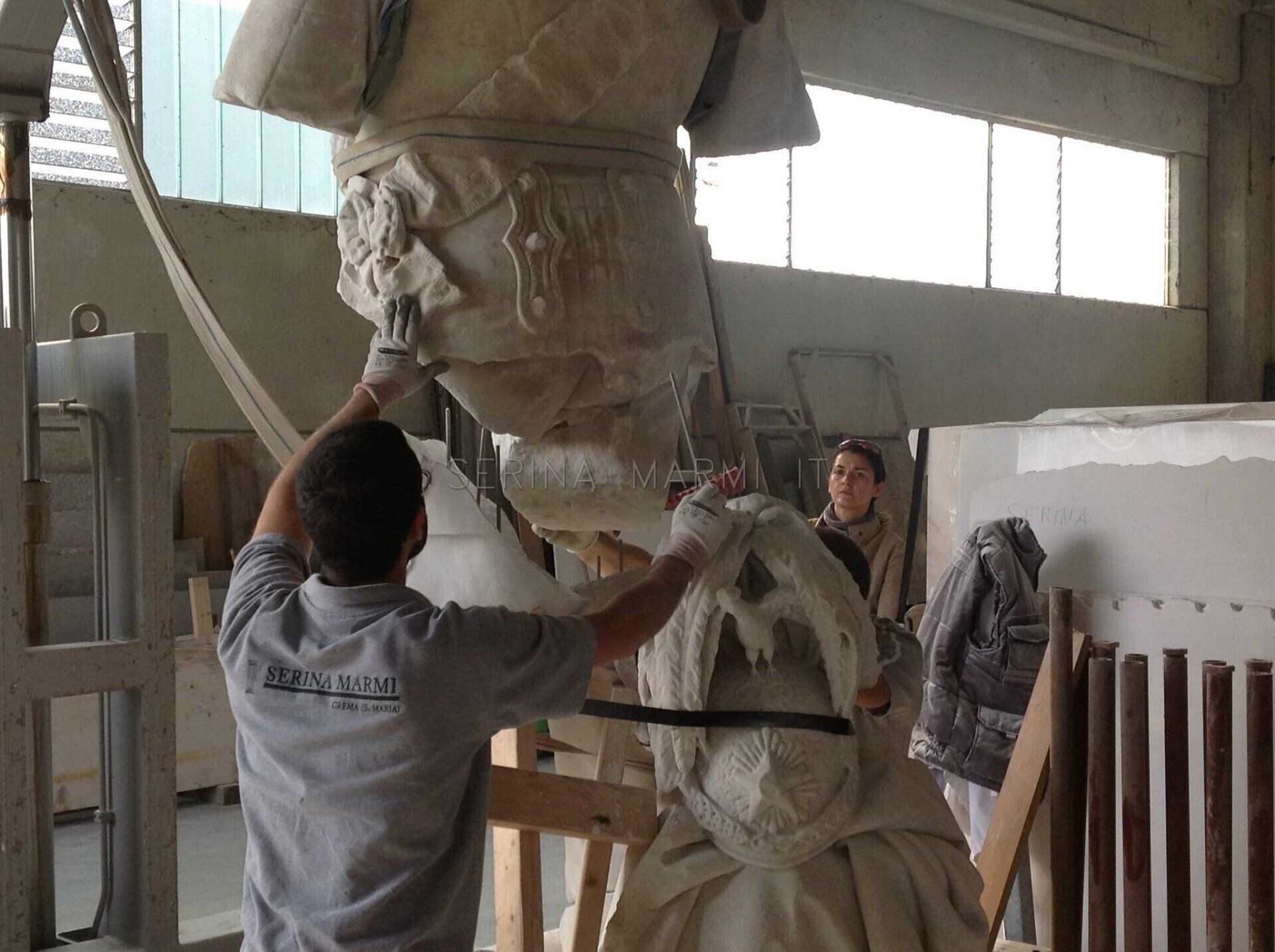 Serina Marmi ha lavorato e lavora tutt’oggi sul patrimonio artistico sia pubblico che privato e si avvale di personale con formazione ed esperienza tale da garantire esecuzioni a regola d’arte di altissimo livello qualitativo e artistico, sia classico che moderno, nel campo della scultura, del restauro architettonico e dell’edilizia conservativa.